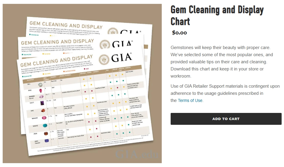 GIA 보석 세척과 디스플레이 챠트